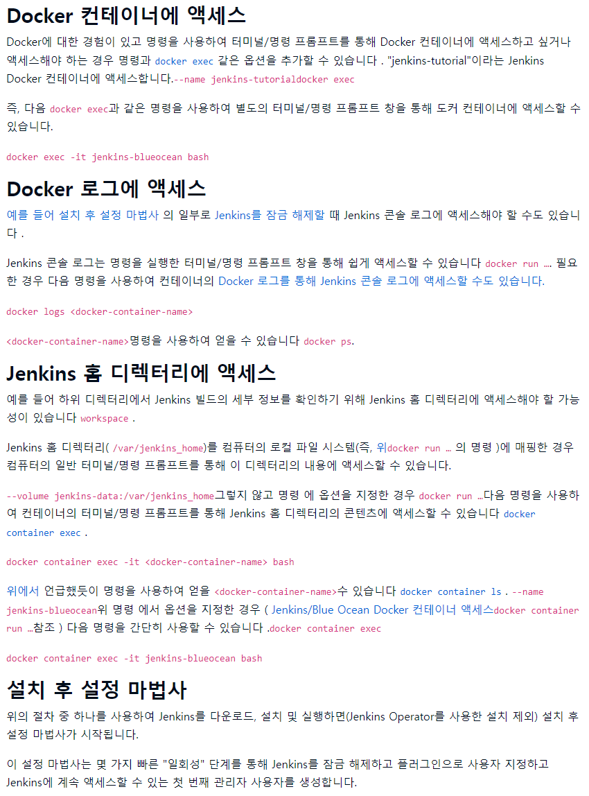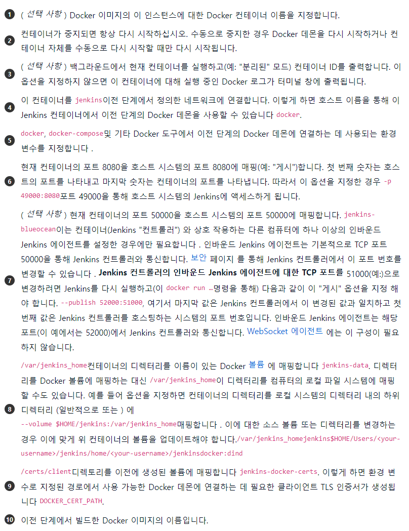 이 Dockerfile에서 새 도커 이미지를 빌드하고 이미지에 의미 있는 이름(예: "myjenkins-blueocean:2.401.1-1")을 할당합니다.