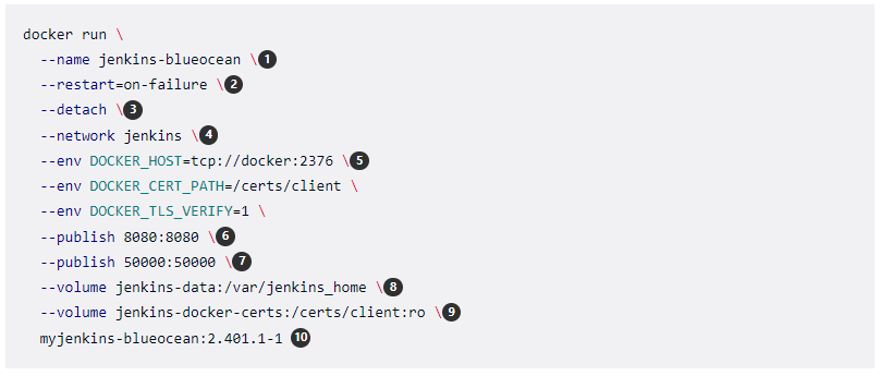 --publish 8080:8080 --publish 50000:50000 myjenkins-blueocean:2.401.1-1