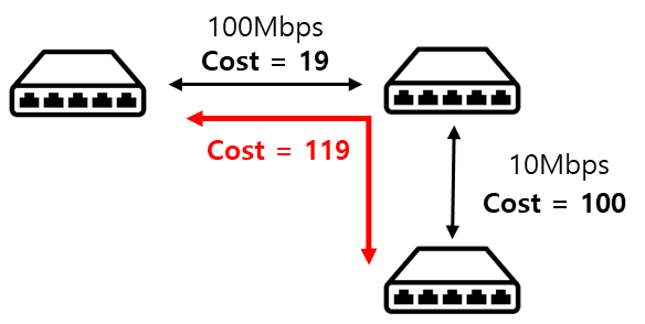 원래 STP를 정의하고 있는 IEEE802.1D에서는 이 Cost 값을 계산할 때