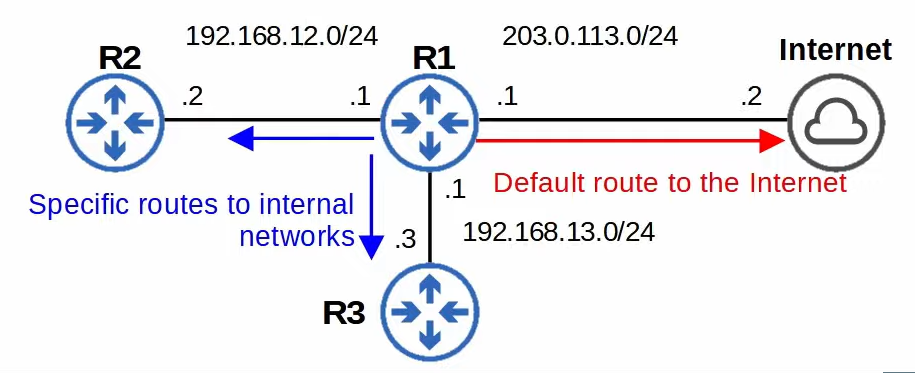 - 라우터는 목적 경로에 있는 모든 네트워크에 대한 경로가 필요하지 않다는 점에 주목할 가치가 있다.