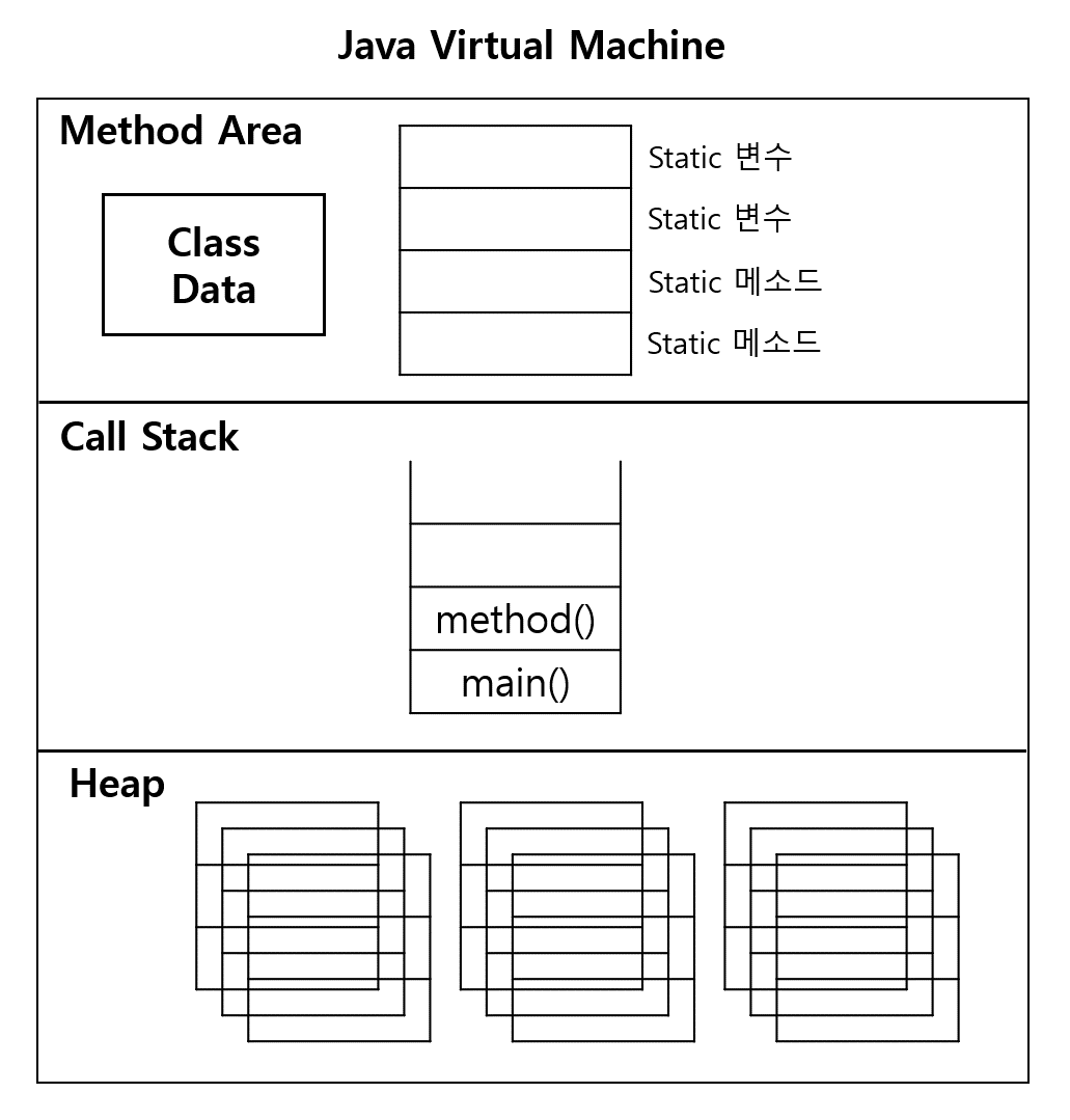 - 메소드가 호출되면 메모리 공간을 할당받고, 메소드가 종료되면 메모리를 반환한다.